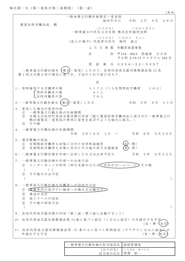 「一般事業主行動計画書」